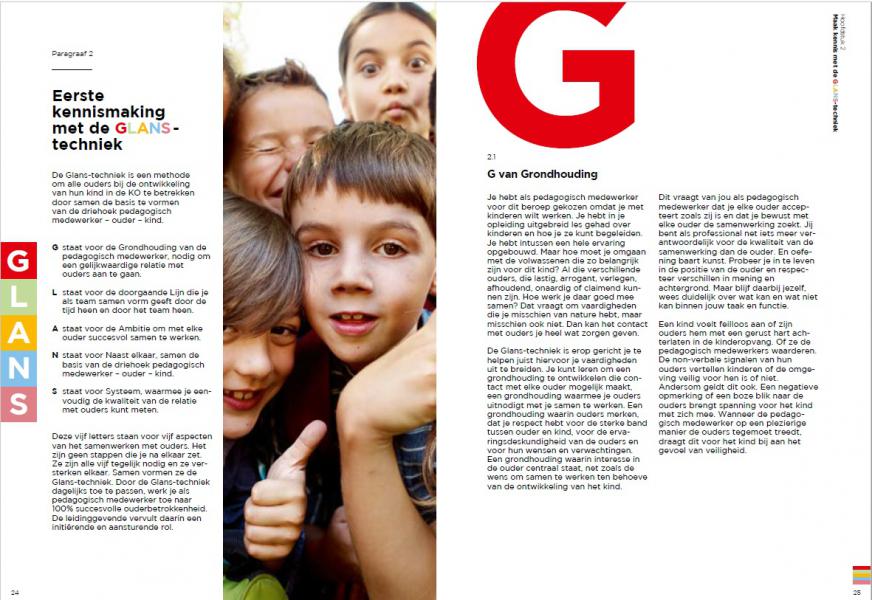 De basis van het boek is de driehoek pedagogisch medewerker-ouder-kind. Je leert hoe je deze kunt laten glanzen op een systematische manier. Hiermee bespaar je veel tijd en voorkom je onnodige problemen.